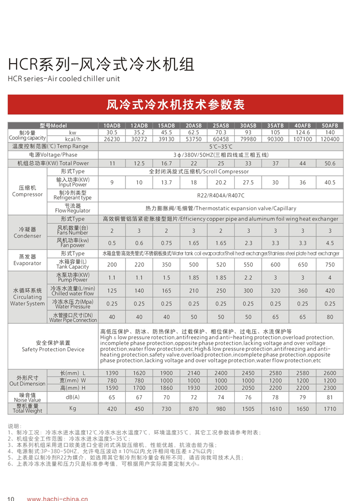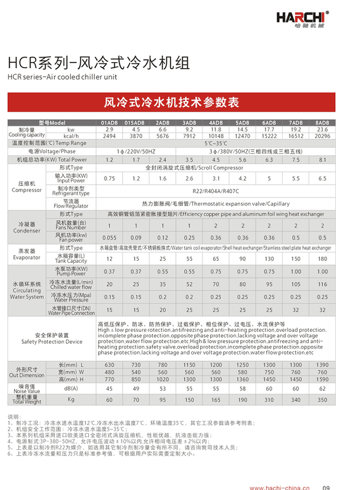 3、風(fēng)冷冷凝器全部采用進(jìn)口風(fēng)機(jī)及大風(fēng)量低噪音軸流設(shè)計(jì),噪音更低、換熱效率更高;